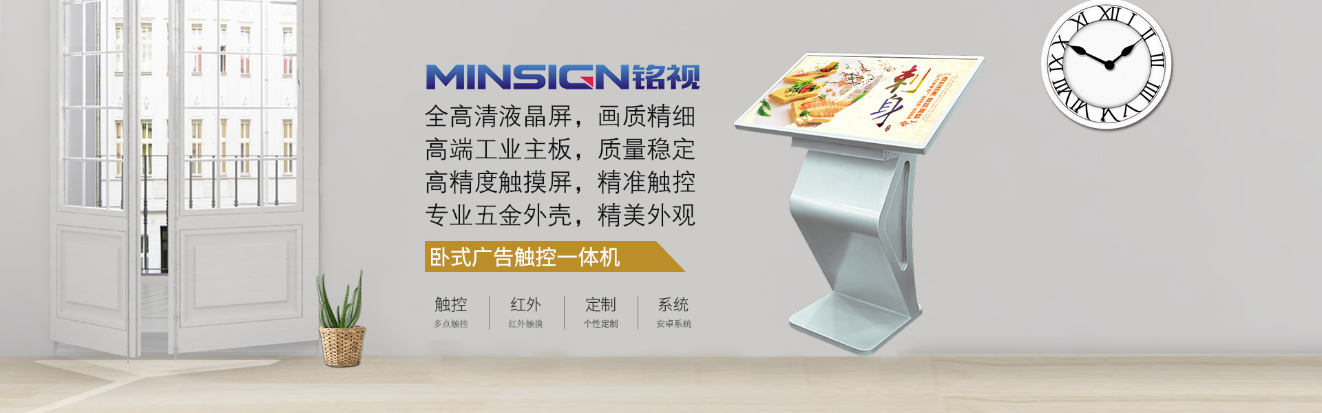 廣州銘視信息科技有限公司(簡稱銘視)是一家致力于智能顯示設備的研發、生產、銷售的高新企業,主營產品包括液晶廣告機、觸摸查詢機、多媒體播放器等商業顯示設備,產品廣泛應用于酒店、學校、醫院、商場、辦公樓等公共場所。產品已經過國家強制3C認證、CE/FCC/Rohs認證,系統軟件已獲得多個軟件著作權證書。自公司創立以來,團隊一直致力于產品的創新,通過對軟件、硬件的不斷升級,增強了用戶體驗,達到更強的易用性與功能的豐富性,為傳統的商業顯示設備賦予更多的現代信息科技的生命力 。
